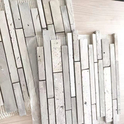 อิฐตาข่ายด้านหลังปูด้วยอินเทอร์โมเสคสีเทาธรรมชาติดีไซน์รูปทรงสี่เหลี่ยม
